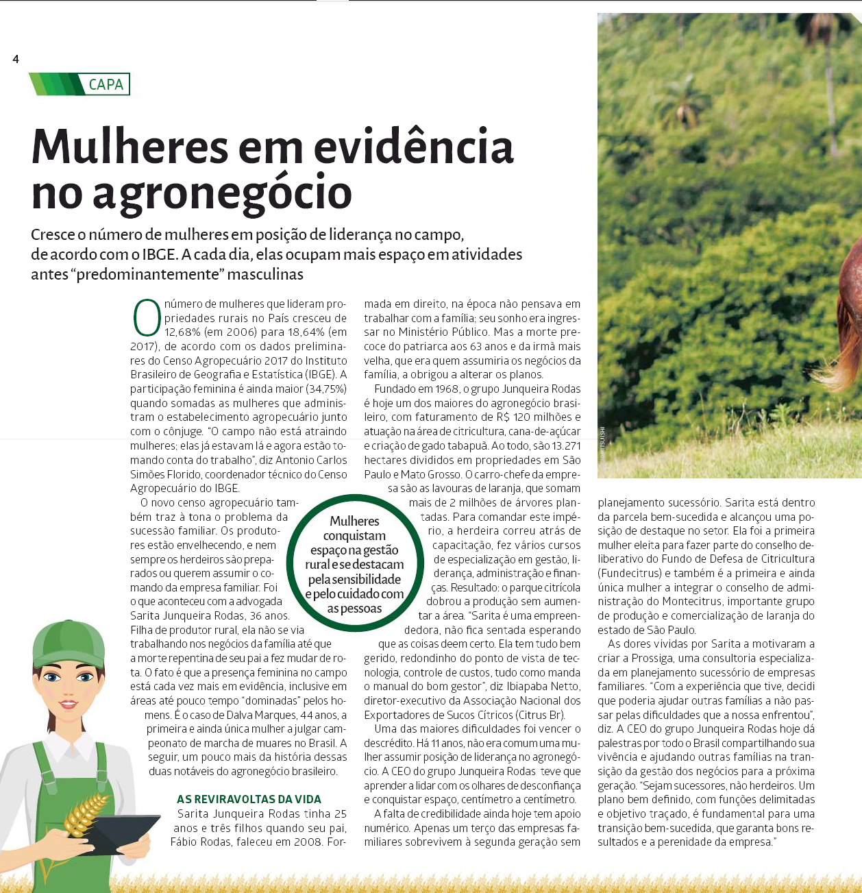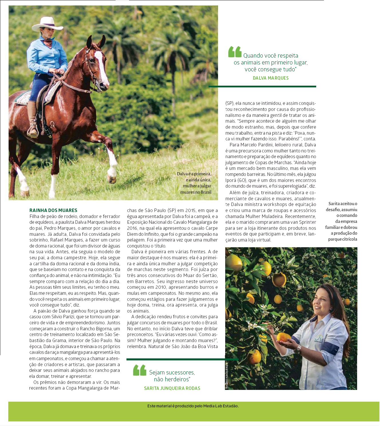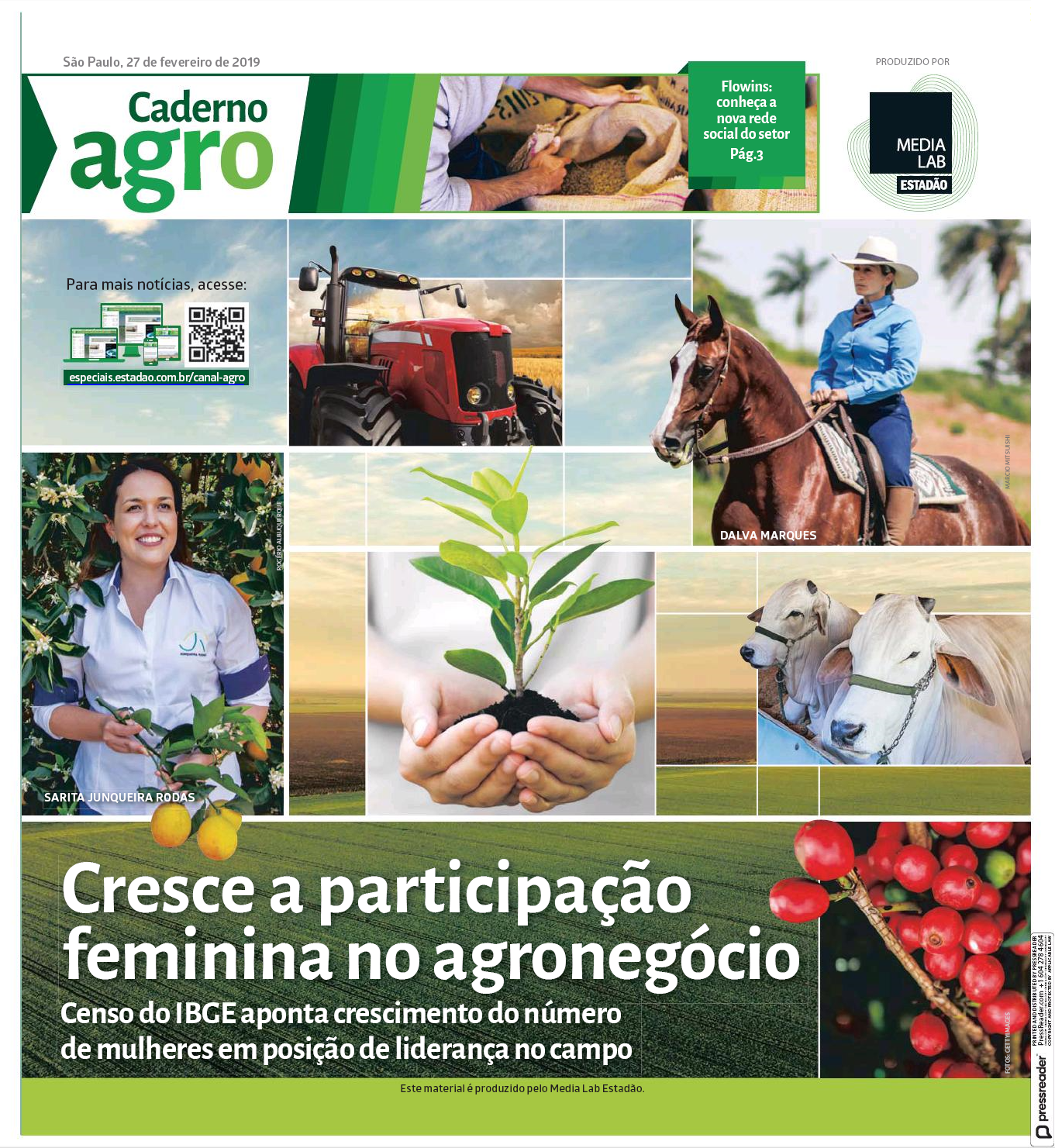 A história dela e de outras produtoras rurais brasileiras é contada na reportagem “Mulheres em evidência no agronegócio”, publicado no caderno Agro, de hoje, no Jornal Estadão.